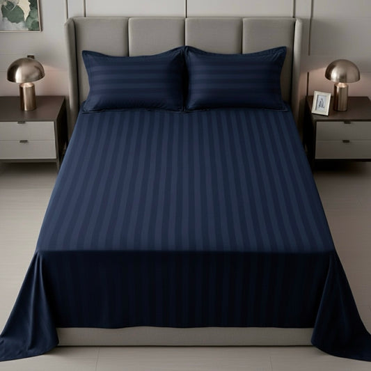 Dark blue striped 600 TC Bedding Set | 100% Cotton Sheets | Deep Pocket | 4-Piece Set