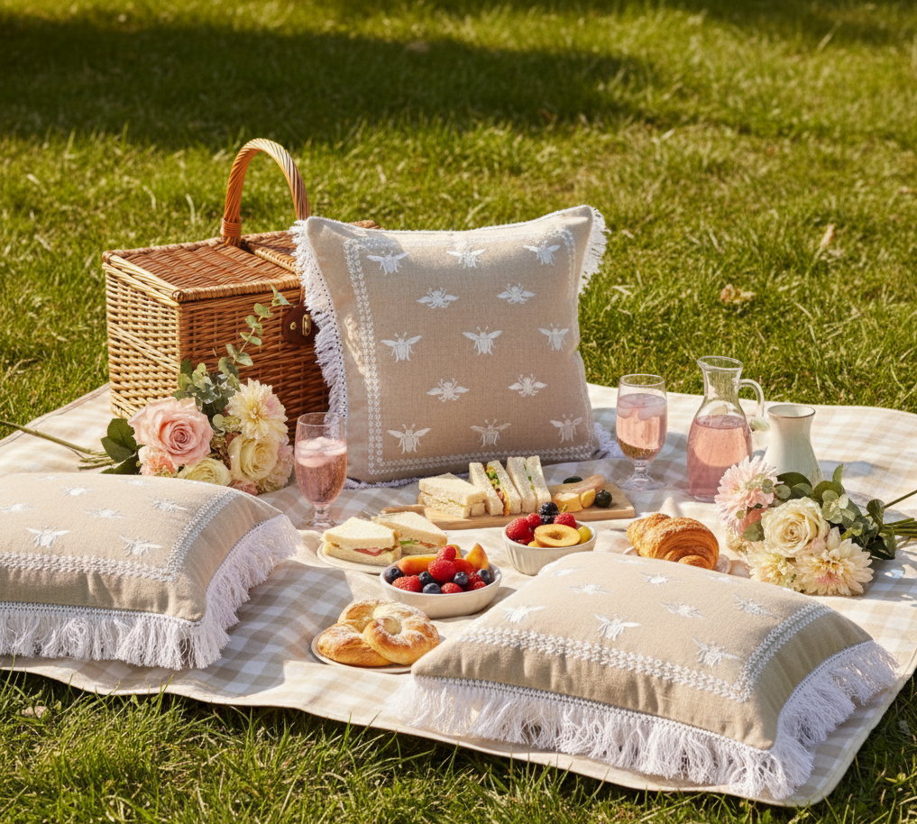 Honey Bee motif cushion cover 16” x 16” | Set of 2