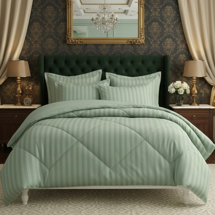 Mint green striped Double bed comforter | 400 TC ~ 100% Cotton
